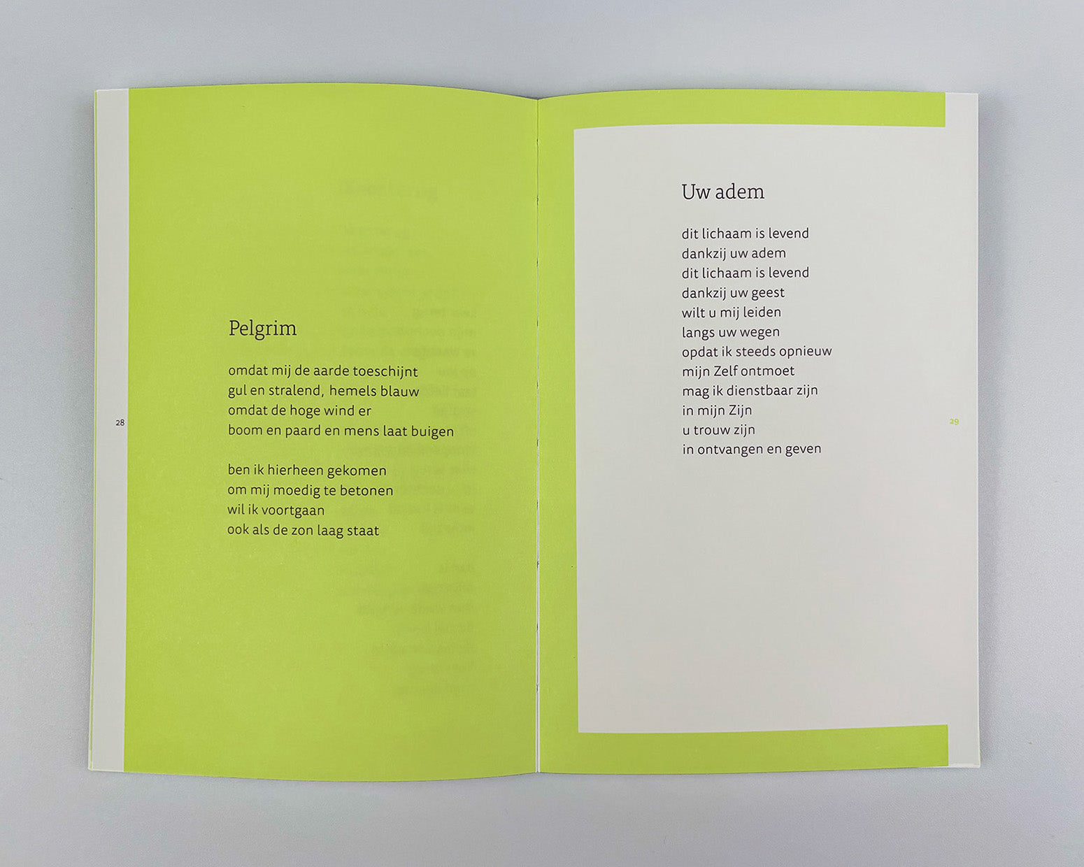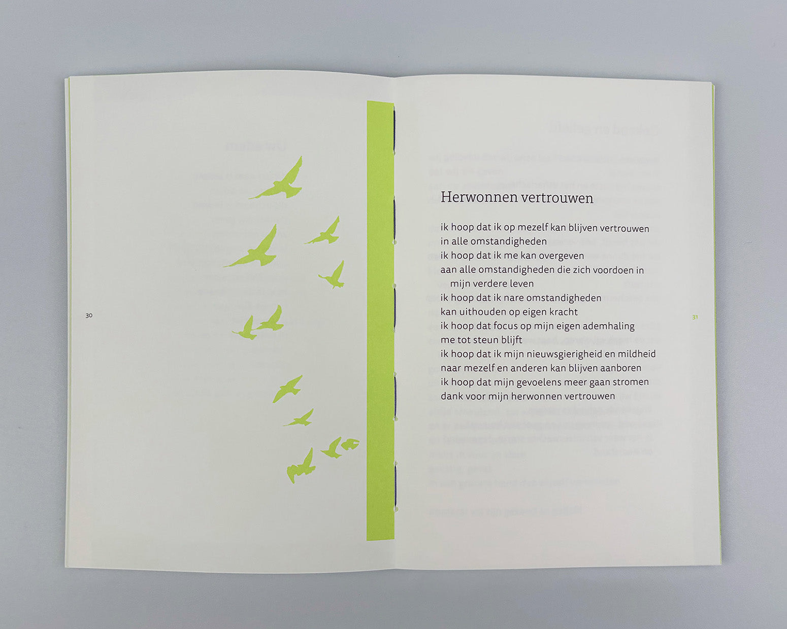 'Tussen werelden van licht' is prachtig vormgegeven en uitgevoerd in een bijzondere 'open' binding, waarbij het boekje soepel openvalt. De verfijnde uitvoering onderstreept de zorgvuldigheid en aandacht waarmee deze bundel is samengesteld — een klein kunstwerk dat uitnodigt tot nabijheid en verstilling.